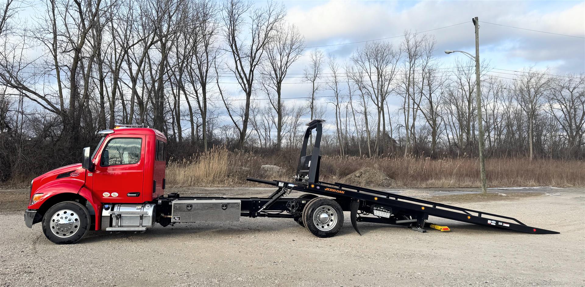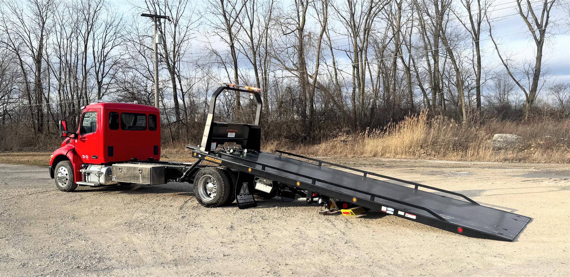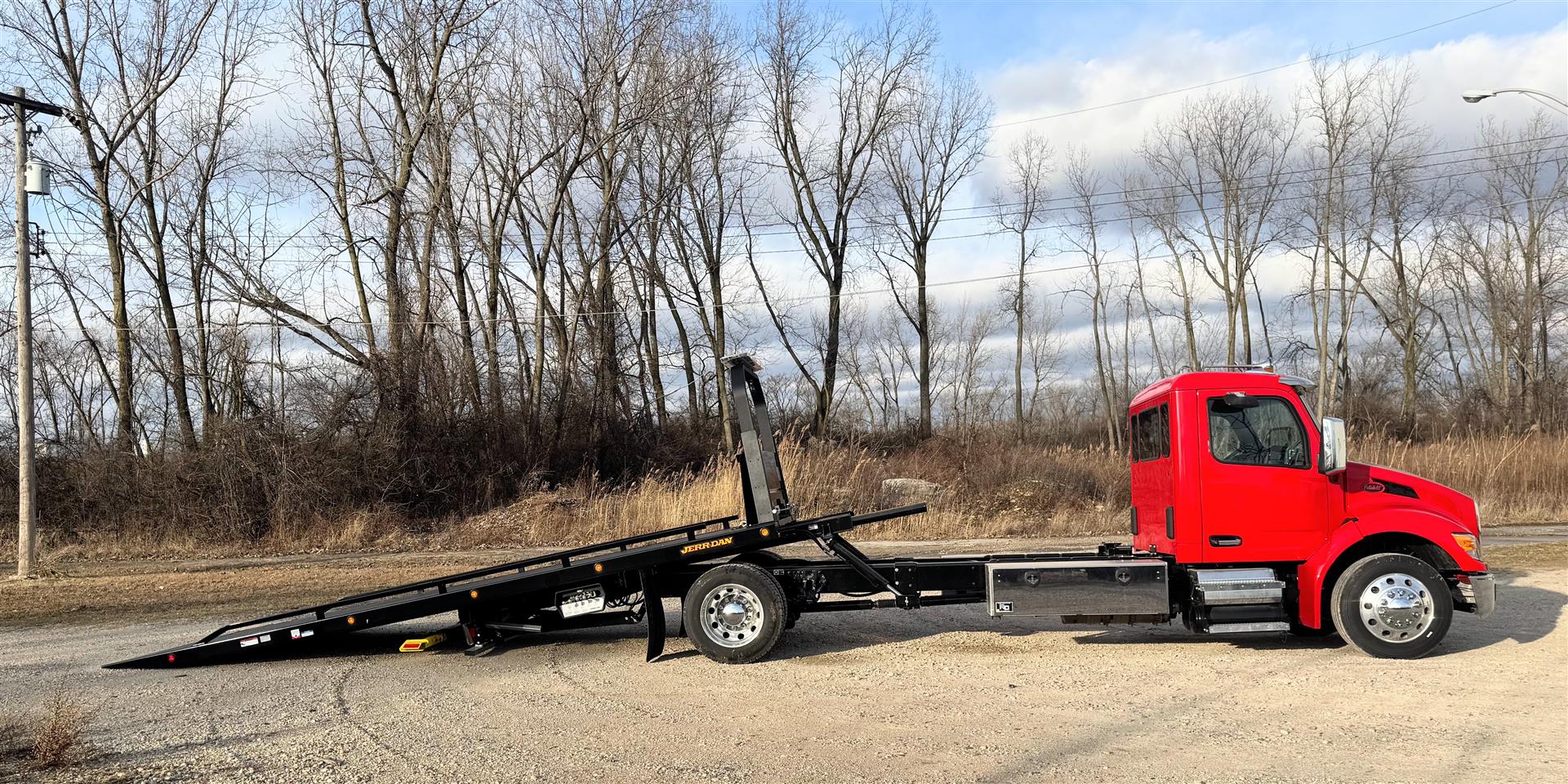 Jerr-Dan carriers deliver the strength, stability, and rapid hydraulics you need for more efficient loads and unloads that get you to the next job, faster.  We spec and build them better because we care about the folks working them!  We collaborate with users to come up with the best fit for their application.  Our installation team leader is an experienced Tow Boss and past operator.  All the right options to make your operator's job easier, safer and faster are included on our towing & recovery equipment!  Lots of lighting to see and be seen, extra tie-down points to secure loads fast, and options to help keep operators away from danger like wireless winch remote.
