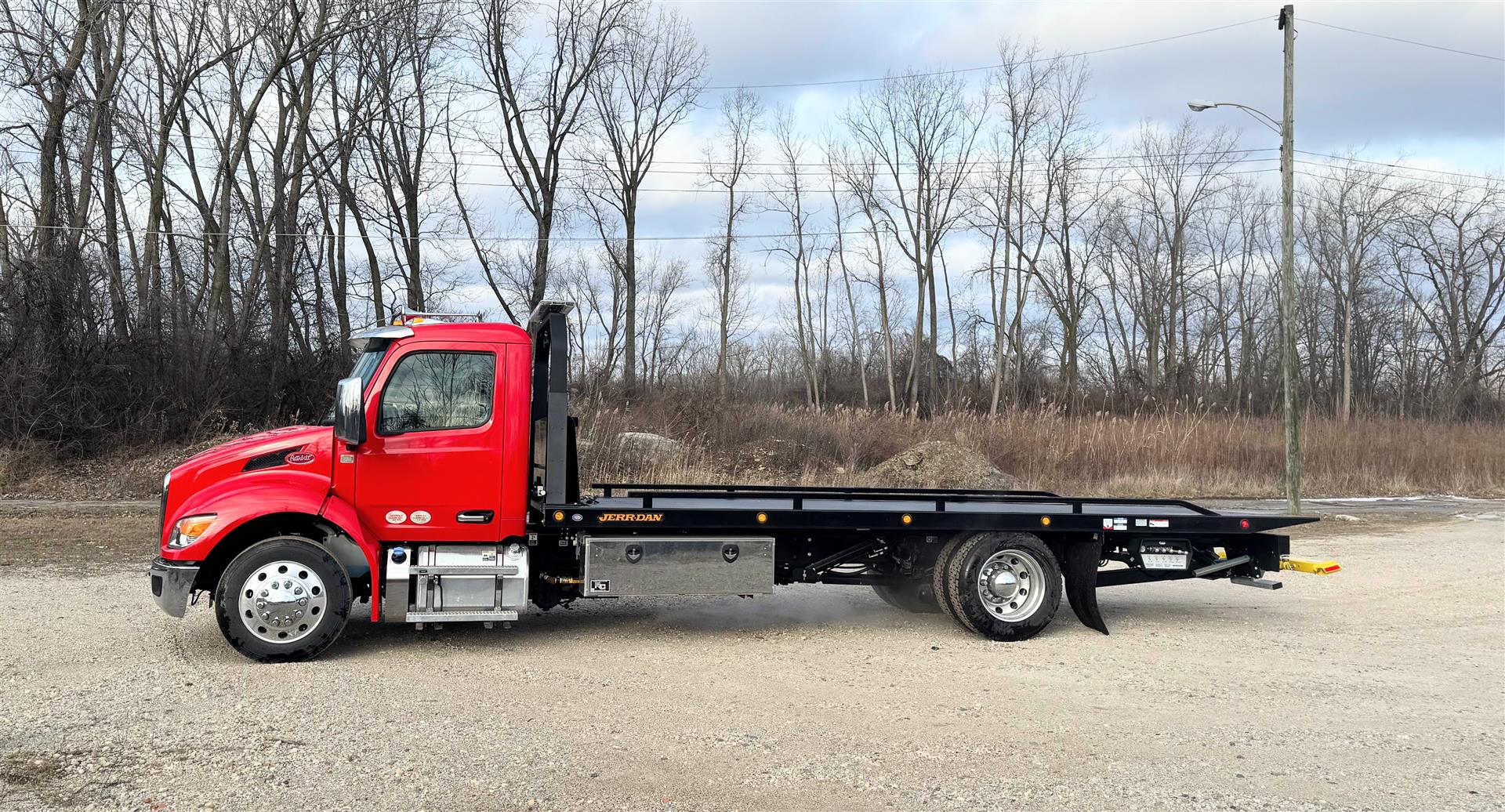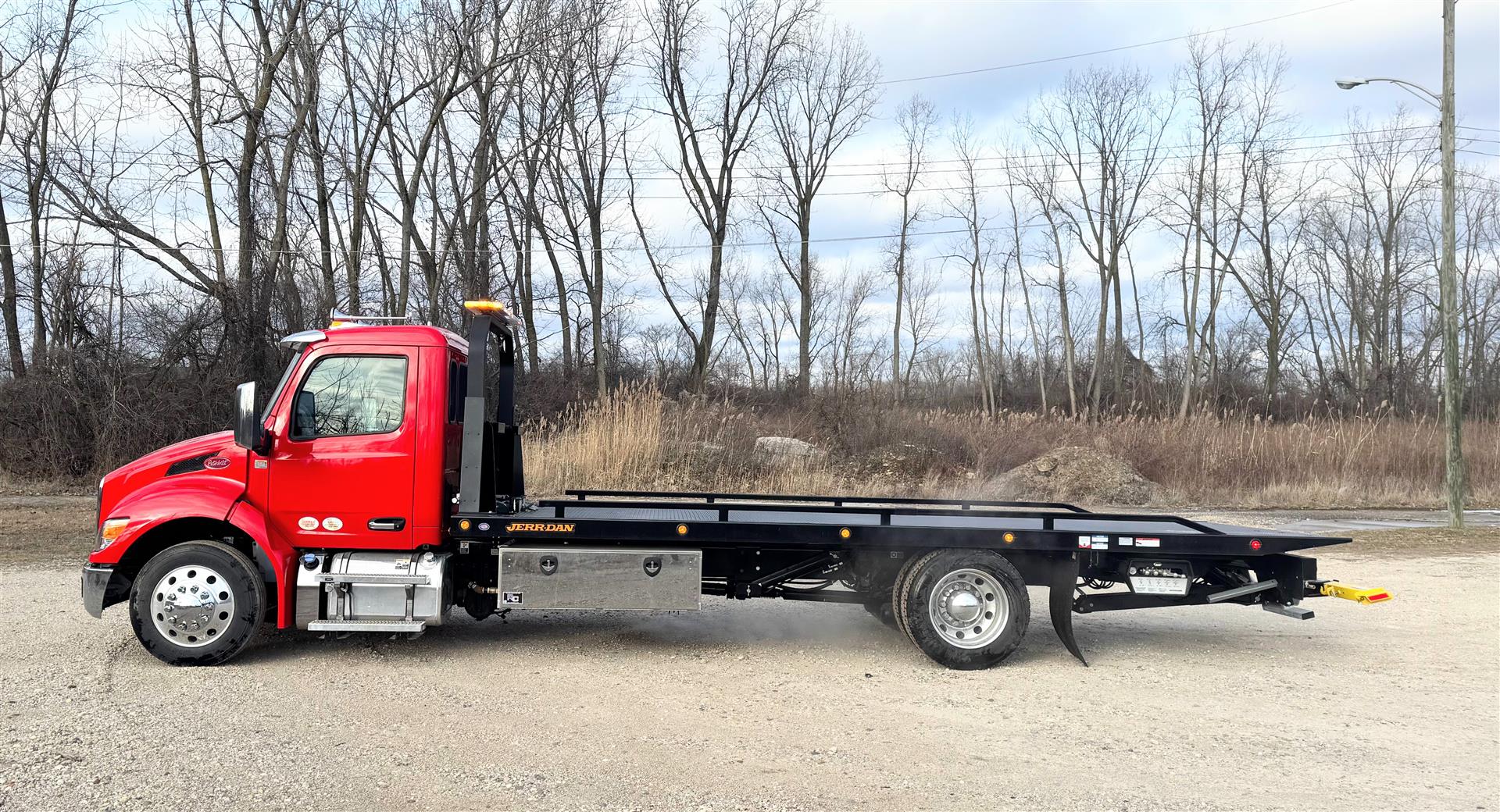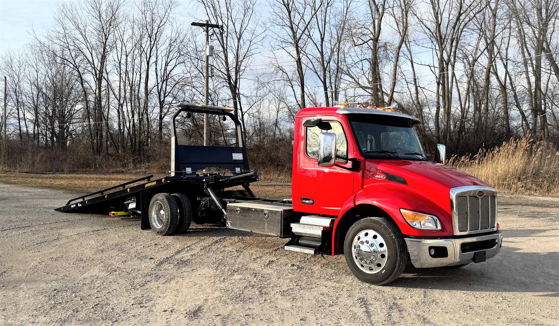 Jerr-Dan carriers deliver the strength, stability, and rapid hydraulics you need for more efficient loads and unloads that get you to the next job, faster.  We spec and build them better because we care about the folks working them!  We collaborate with users to come up with the best fit for their application.  Our installation team leader is an experienced Tow Boss and past operator.  All the right options to make your operator's job easier, safer and faster are included on our towing & recovery equipment!  Lots of lighting to see and be seen, extra tie-down points to secure loads fast, and options to help keep operators away from danger like wireless winch remote.