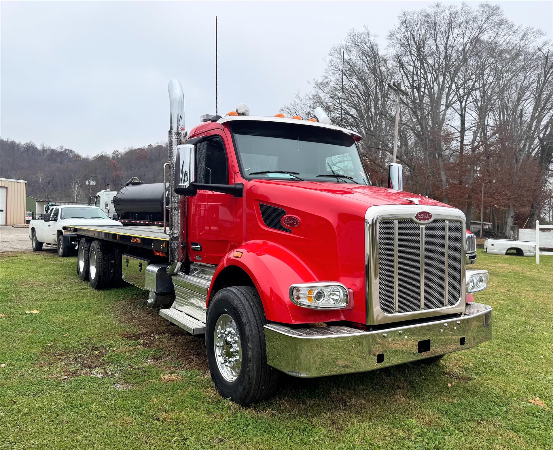 Rugged, reliable Jerr-Dan 15 ton low profile transporters offers the perfect combination of strength, stability, weight savings, low maintenance and gentle load angle to haul more, improve productivity and lower your overall cost of doing business! Matched with the bold, aerodynamic Peterbilt 567 chassis you get a heavy duty truck, with plenty of ground clearance, extra fuel capacity and excellent fuel efficiency for fewer stops during the day. We supply Jerr-Dan beds w/lots of tie down points for maximum flexibility to handle whatever you haul. Drivers appreciate Peterbilt's excellent frontal visibility, tight turning radius for easy maneuverability and enjoy spending the day in a safe, roomy, comfortable, quiet cab with all operator controls within easy reach. Teamed together they are a heavy duty, efficient, low profile arsenal to haul all of your equipment.