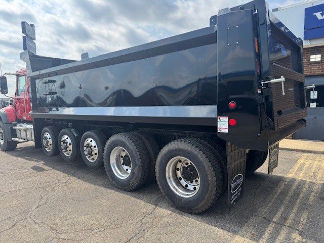 Ready to work Quint! 2026 Mack GR64F with a MP8-455hp, Allison 4500RDS, Mack Rears with HMX Suspension, Disc Front, Drum Rear, 10k Hendrickson Steerable Lift Axles with tires and wheels. Chrome Package with Visor, Bulldog Mirrors, Grille, Polished Tanks. Preferred Interior with Leather Driver's Seat. Heritage AR450 Steel Dump Bed, 21' x 48" Sides with Air Tailgate. 22" overhang with 3" Apron perfect for paving applications. Call today to schedule your test drive. Competitive financing available with up to 90 days until first payment (With approved credit).
